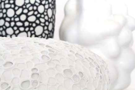 The exhibition 'Shapes 'n' Surface' ( 6th jun -12th july 2020) presents a large group of ceramic pieces by Lone Skov Madsen, dating from 2007–2019. Across the wide variation in expression and the long time span, her work explores a common theme. The shapes are organic, always with the vase as the underlying form. Thus, the unfettered expression notwithstanding, there is a unifying quality to the form that allows for experimental decorative surfaces. Lone Skov Madsen’s treatment of ceramic surfaces is her specialty, based on repetition of minute artistic features to form powerful ornamentation